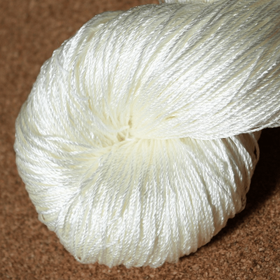 柞蚕(野蚕)の生糸撚糸です。家蚕生糸に比べ、軽くてシャリ感があり、ニットなどにも利用されます。