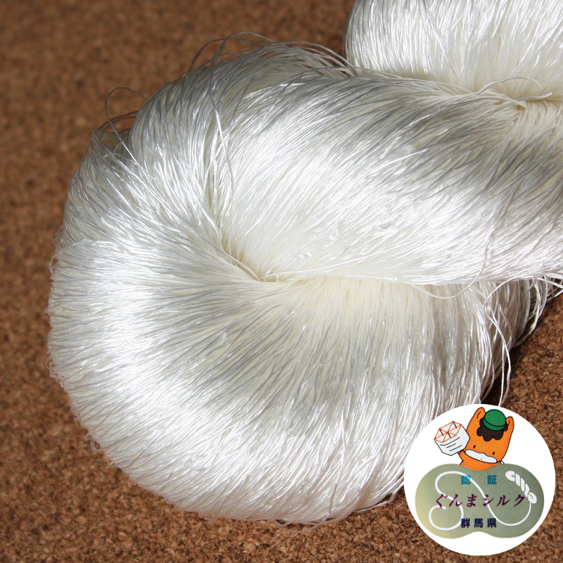 群馬県オリジナル蚕種「ぐんま200」の春繭を使用した高品質の国産生糸を、撚糸・精練まで全て国内の専門工場で加工した純国産絹糸です。